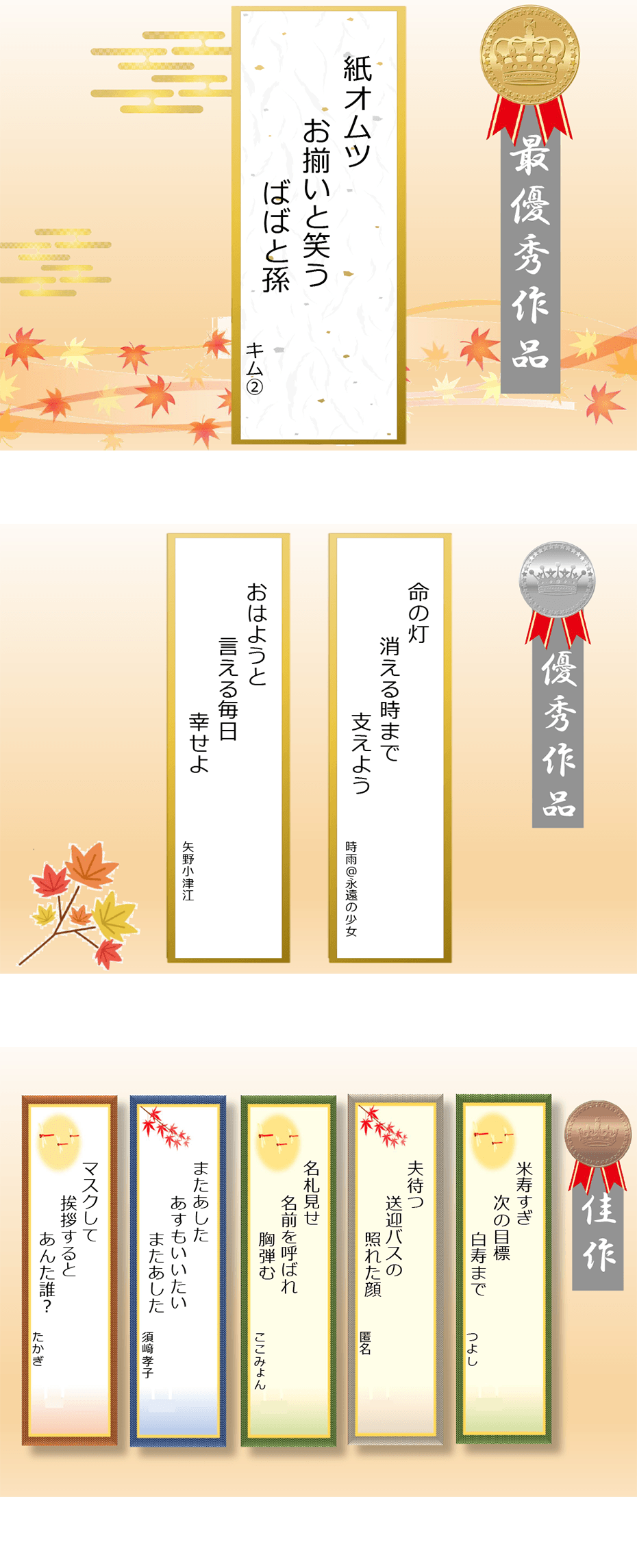 介護の仕事を通じて、利用している側から見て、ご家族の介護の経験を通して、 学校での学びや地域活動の中での体験や思いを川柳で表現して頂きました。 介護の励みになったり、みんなが笑顔になると願ったり、川柳をご紹介いたします。