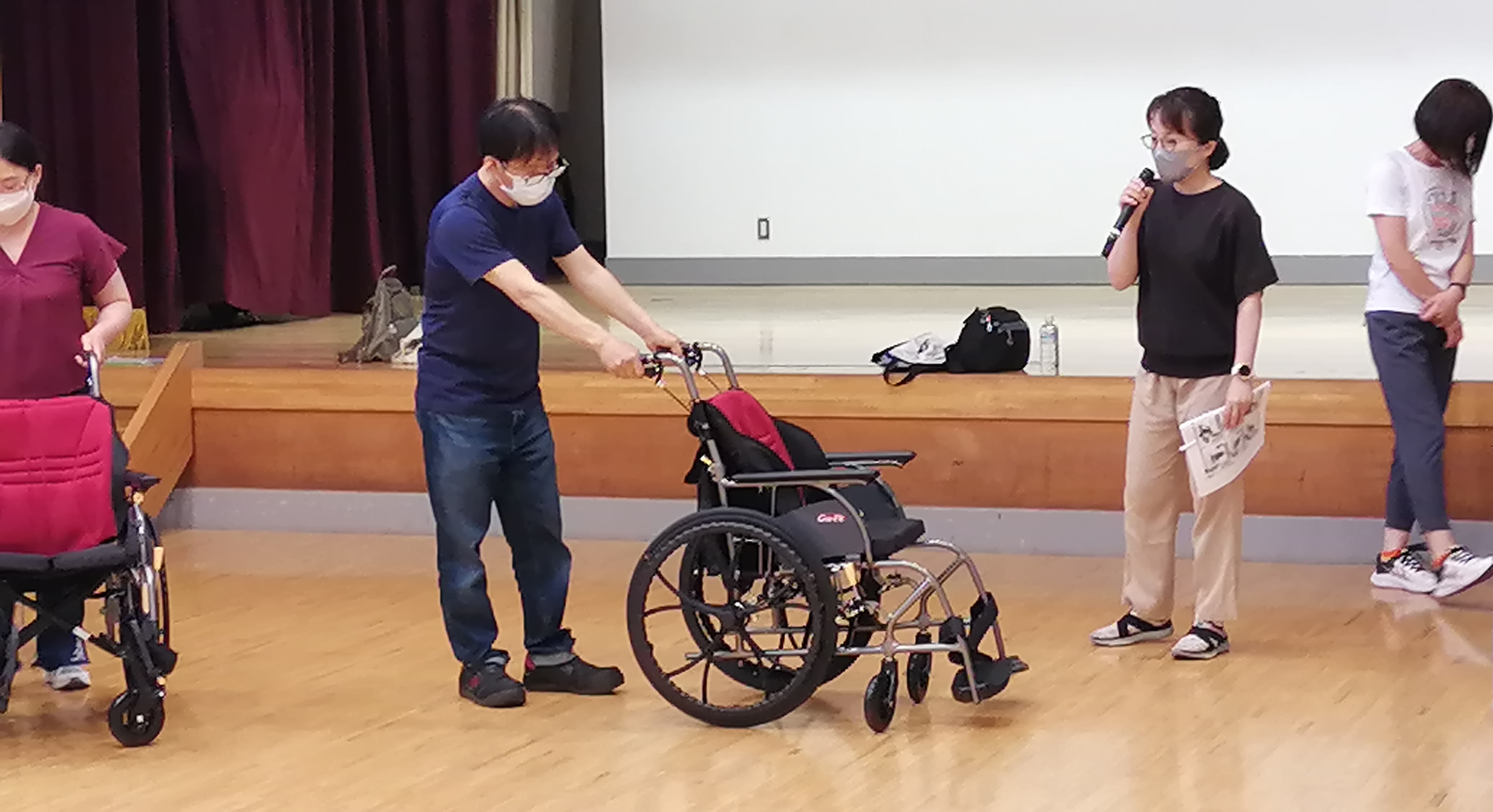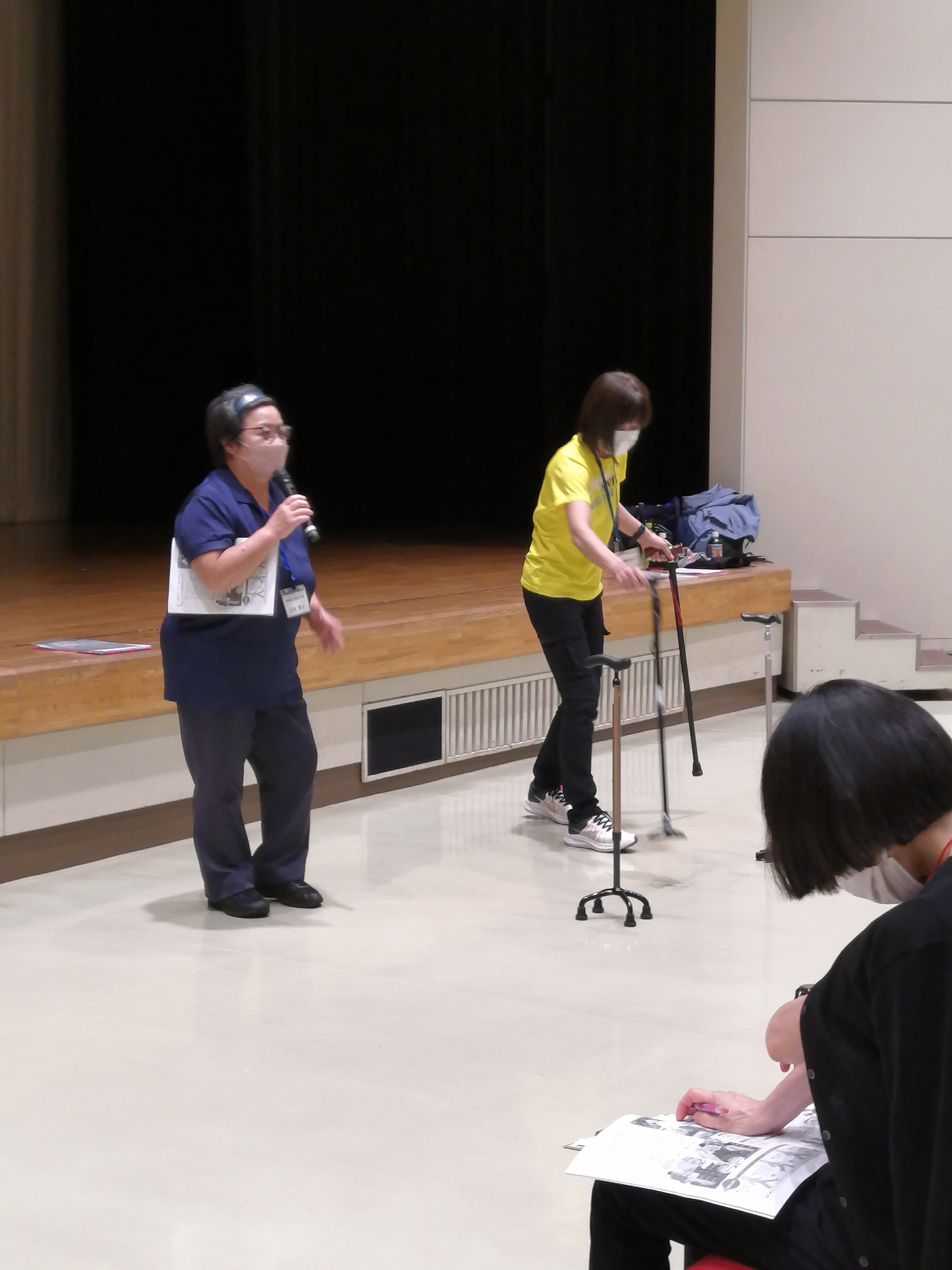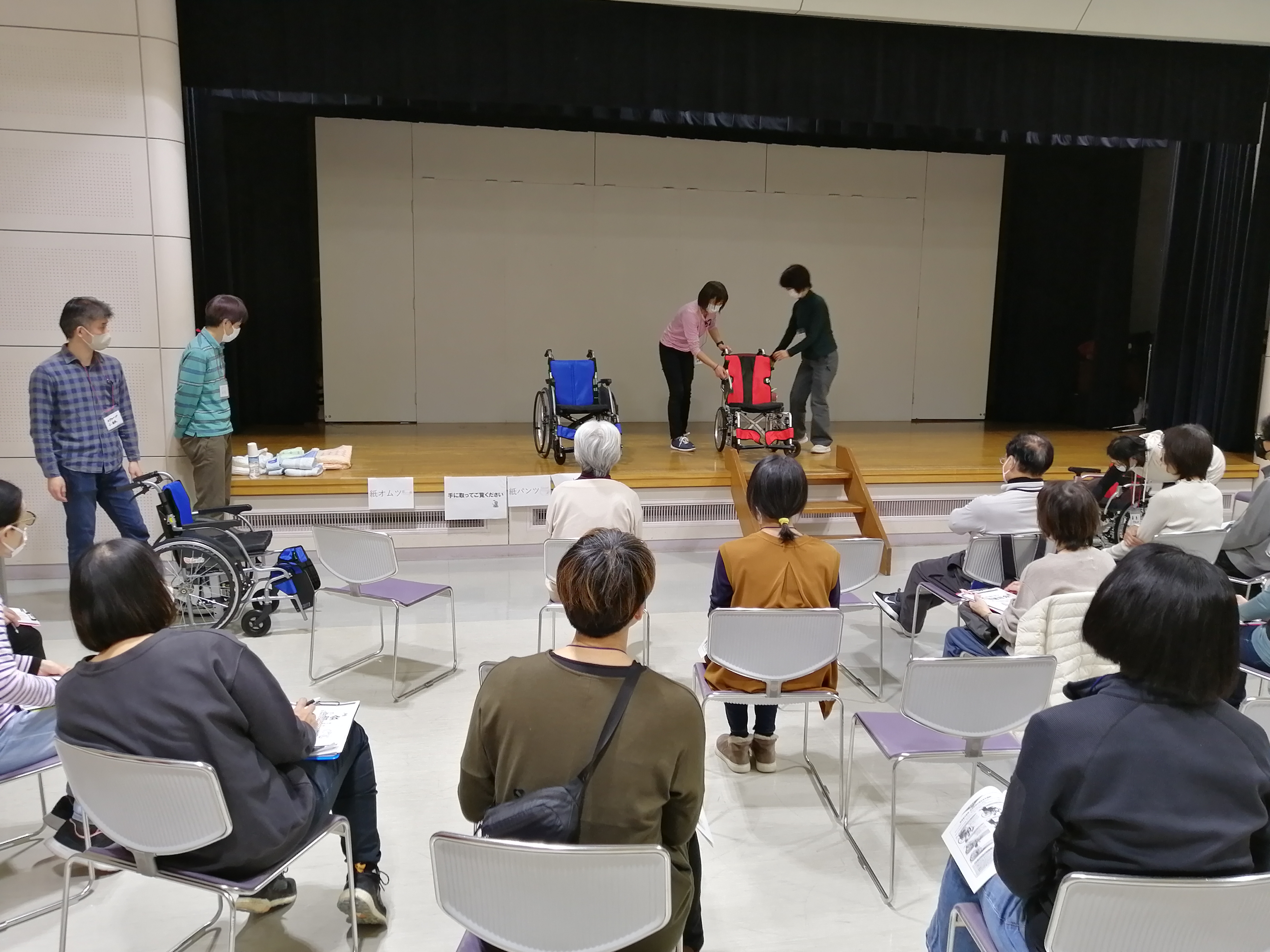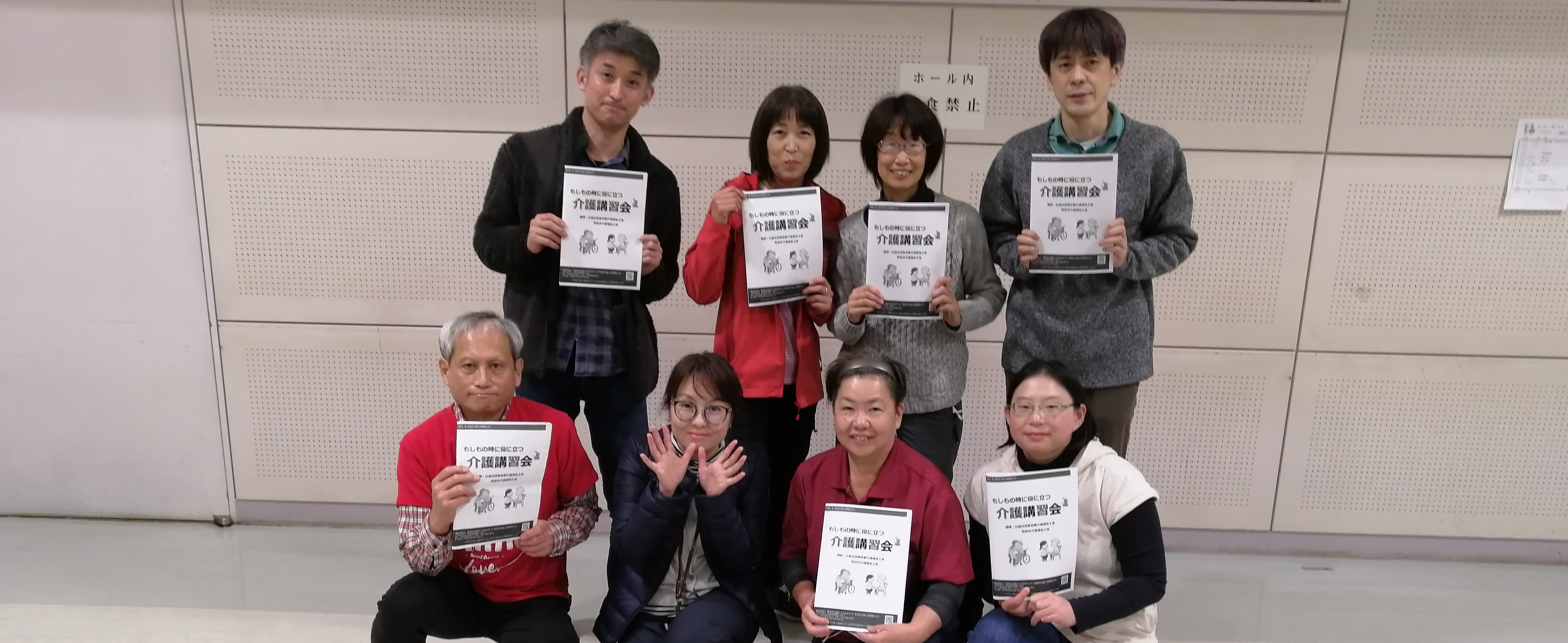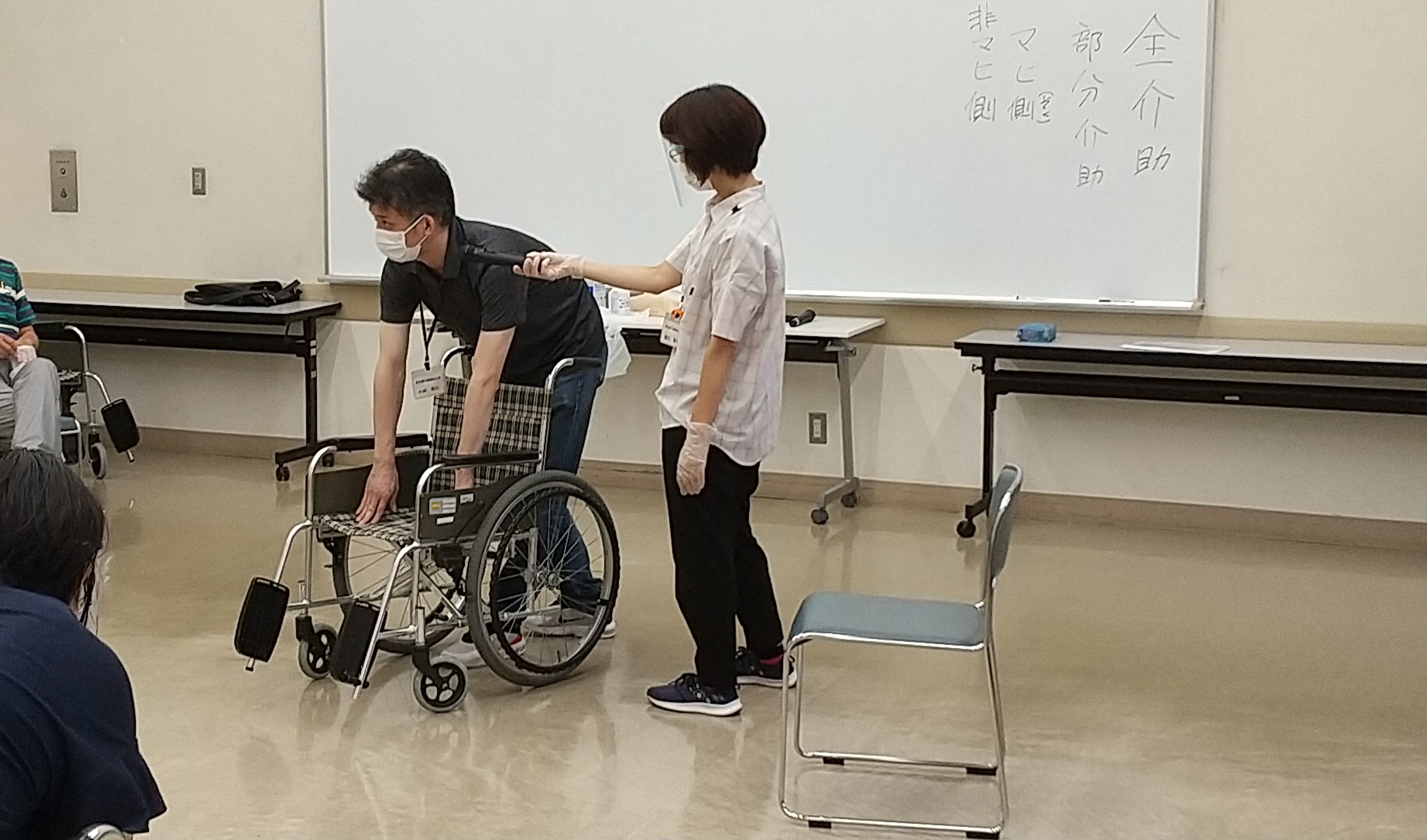 町田市介護人材開発センターでは年間3回、「介護講習会」を開催しています。家庭で介護をしている方、介護の仕事をしてみたい方等を対象に実施しております。講師は町田市介護福祉士会にお願いして、実際に各施設で介護をしている方々による体験型介護講習会になります。車いすの移乗、立ち座りや歩行の介助、コミュニケーションの取り方について実技を交えながら学ぶ講習会です。