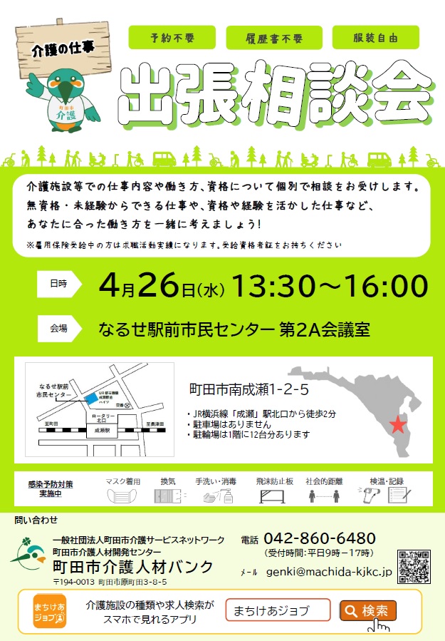 しごとの相談会 4/26(水)開催 町田市介護人材バンク・出張相談会inなるせ駅前市民センター
