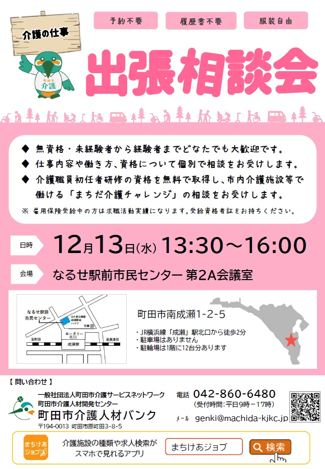 しごとの相談会 町田市介護人材バンク 出張相談会inなるせ駅前市民センター